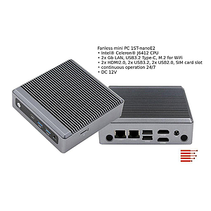 Fanless mini PC with Intell® Elkhart Lake Celeron® J6412 quad-core CPU, 2,0 - 2,6 GHz, 10W TDP, 1x SO-DIMM DDR4-3200 slot up tor max 32 GB RAM, 2x Gb LAN (Realtek® RTL8111H), 1x HDMI2.0, 1x VGA, 4x USB 3.0, 1x M.2 Key M 2280 Slot for NVME-SSD, 1x Audio, 2x RS-232/RS-485, 12V DC DC-IN, Dimension: 141,4 x 126 x 43,5 mm. Operating Temperature -10°C ~ +50°C, compatibel with Windows 11 64 bit, Linux 64 bit, 24/7.